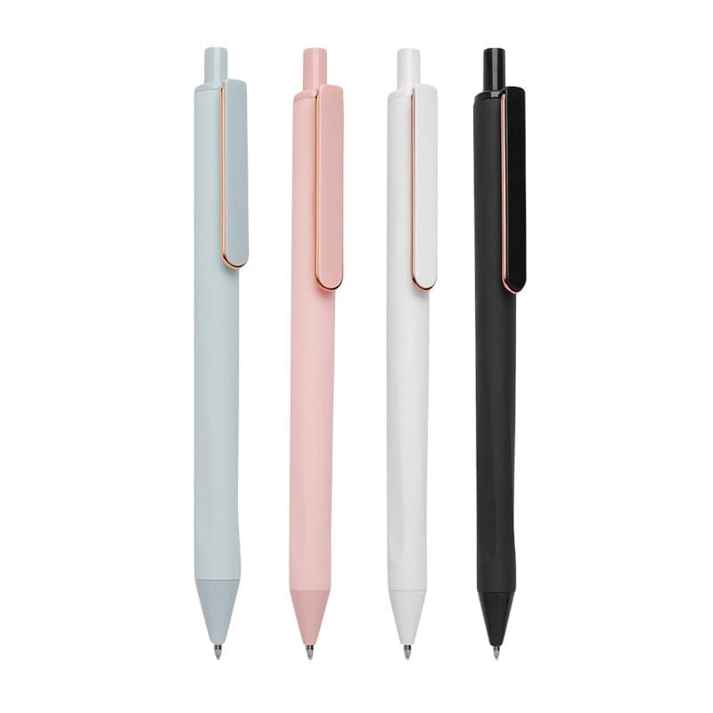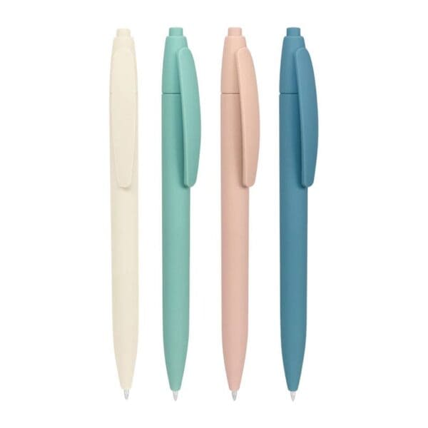 Bolígrafo con terminado tipo rubber. Mecanismo pulsador. Su diseño inferior permite un mejor agarre.